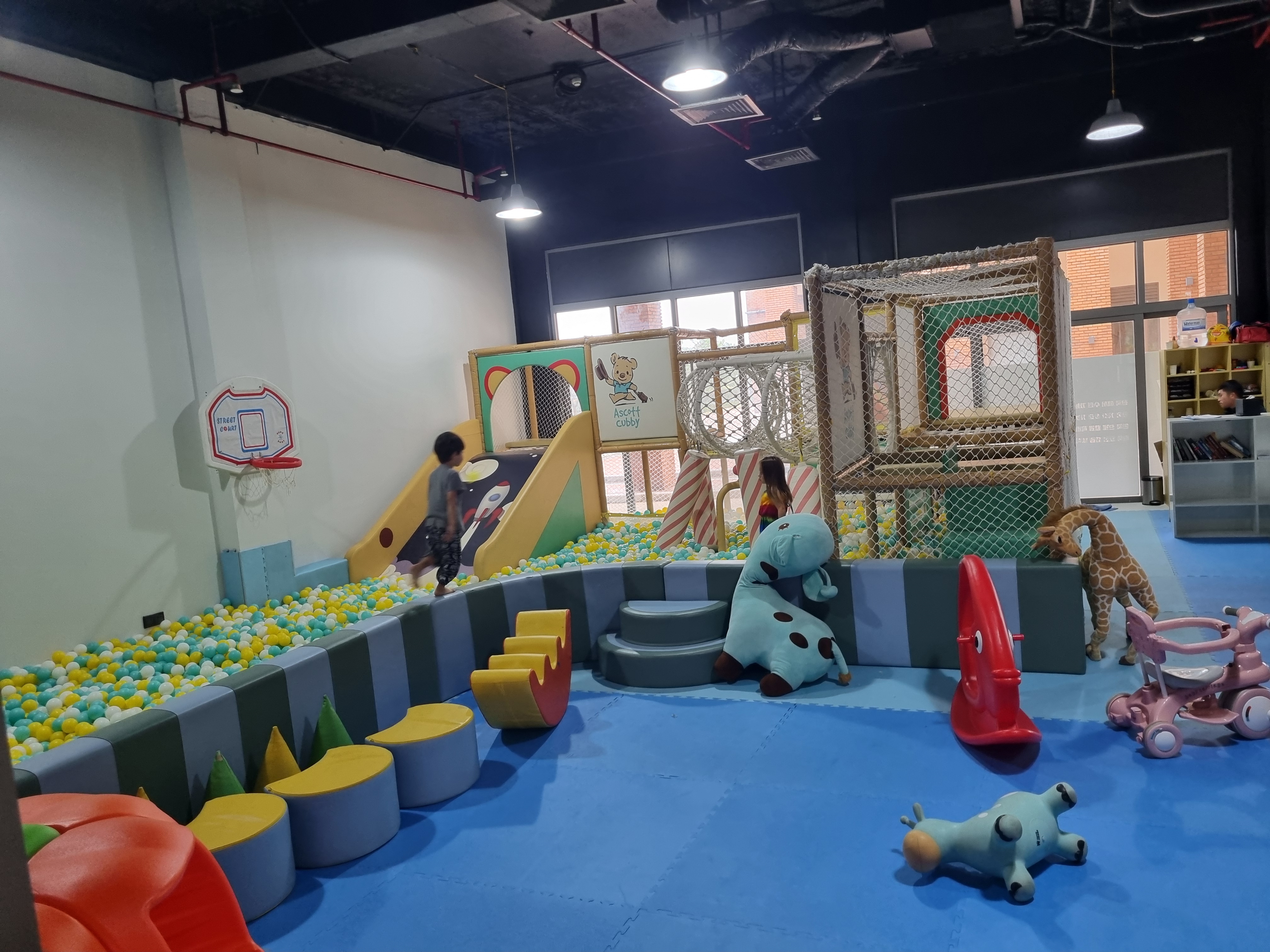 작지만 있을 건 있는 작은 키즈카페라고 보시면 됩니다. 미끄럼틀, 볼풀, 미니 자전거, 부모님들이 이론상으로는(?) 편히 쉴 수 있는 슬링백들이 있습니다. 해외에 가서 키즈놀이터 가면 아이가 외국 아이들과 언어 상관없이 놀아볼 수 있어서 좋은 것 같아요. 아직 저희 아기는 너무 어려서 형, 누나들하고 신나게 노는 편은 아니지만요.