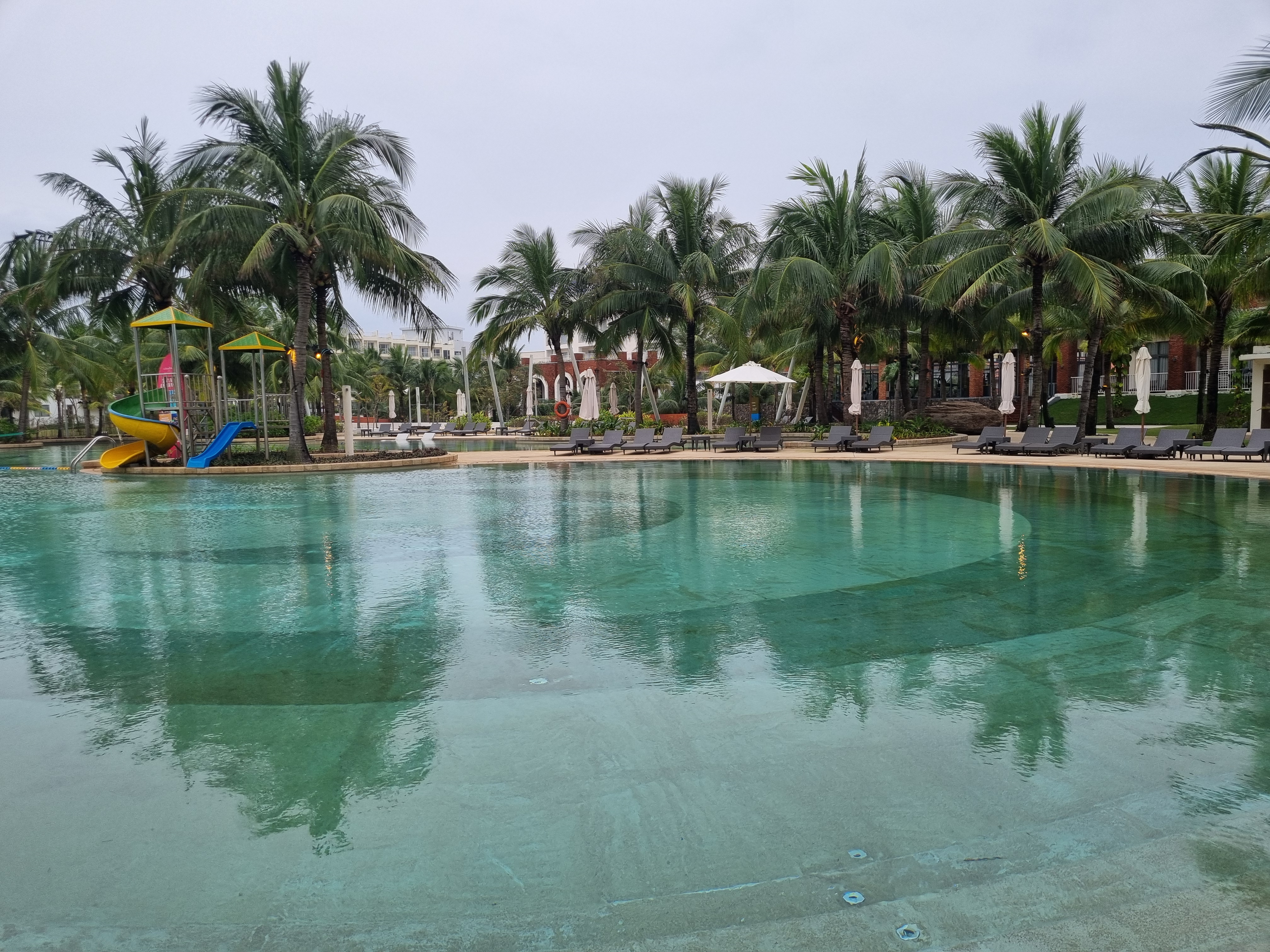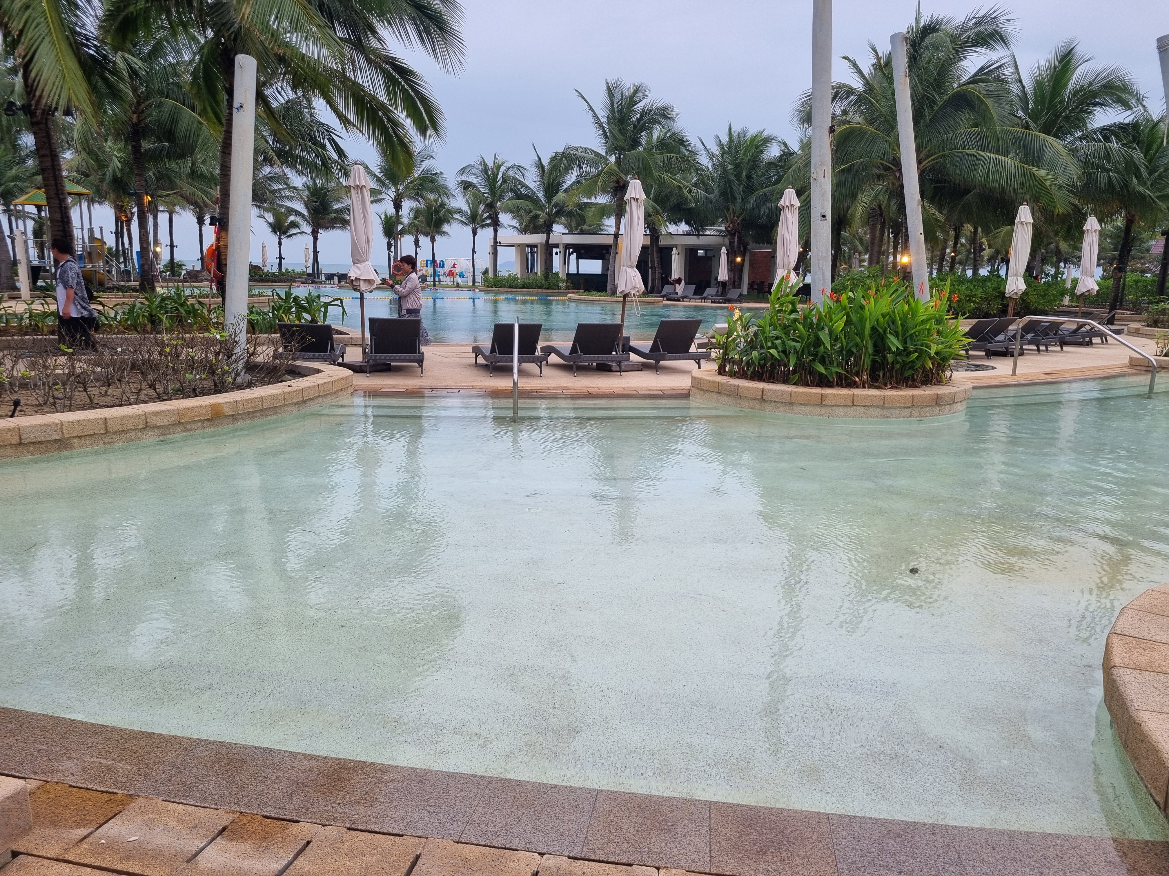 물은 12월(다낭 날씨 22도)이라 그런지 수영하기는 추웠지만, 못할 정도는 아니였습니다. 온수풀은 아니므로 유아 온수풀을 찾으시는 분들께는 신라모노그램 꽝남을 추천합니다. 유일하게 다낭에서 온수풀이 있는 곳이라 다낭 우기에 여행을 하시는 분들께 추천합니다.