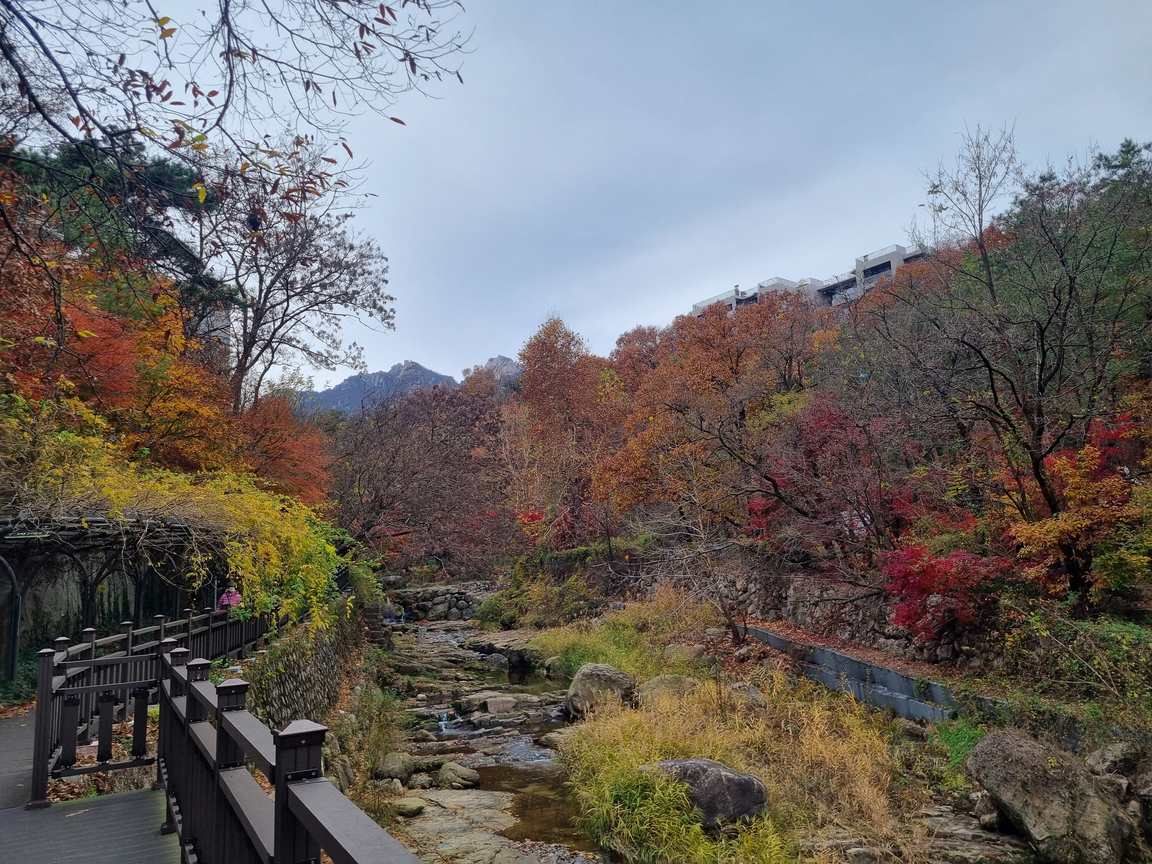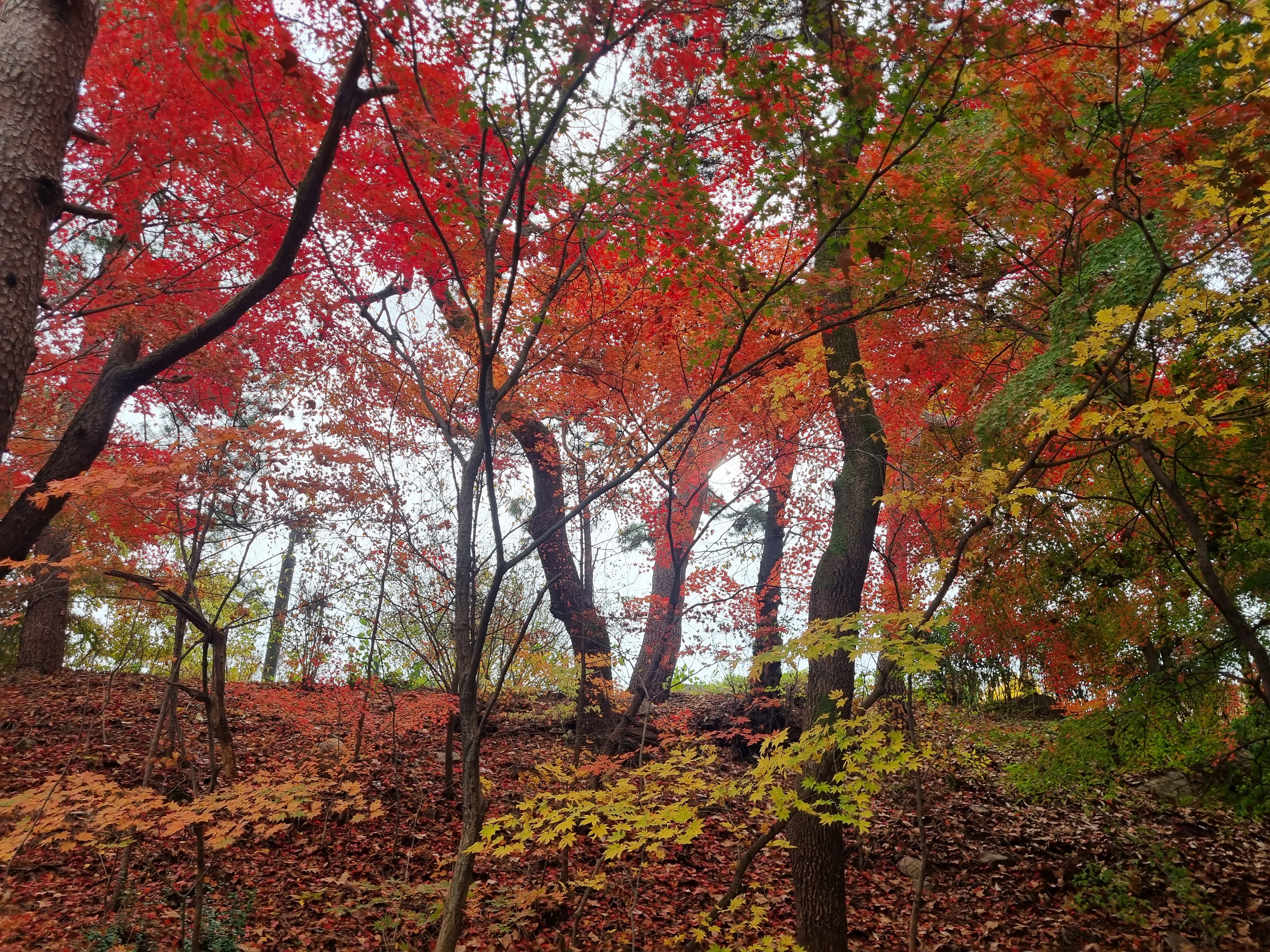 중간에 이렇게 단풍이 거의 물든 구간도 있었어요. 초록이 잘 보이지 않는구간이죠.