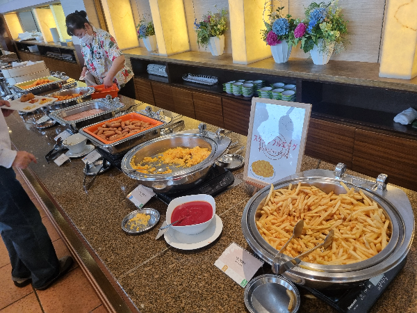 사진을 못찍은 쪽에는 족발, 고등어가 메인으로 있었고 오믈렛과 계란후라이를 해주는 코너가 있어서 따뜻한 음식도 먹을 수 있습니다.