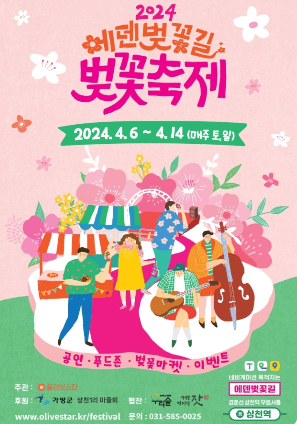- 체험프로그램: 벚꽃 화관/팔찌, 선캐쳐 등 벚꽃체험 ZONE + 캐릭터를 활용한 키링, 페이스페인팅 등 하하 호호 체험 ZONE, 플리마켓